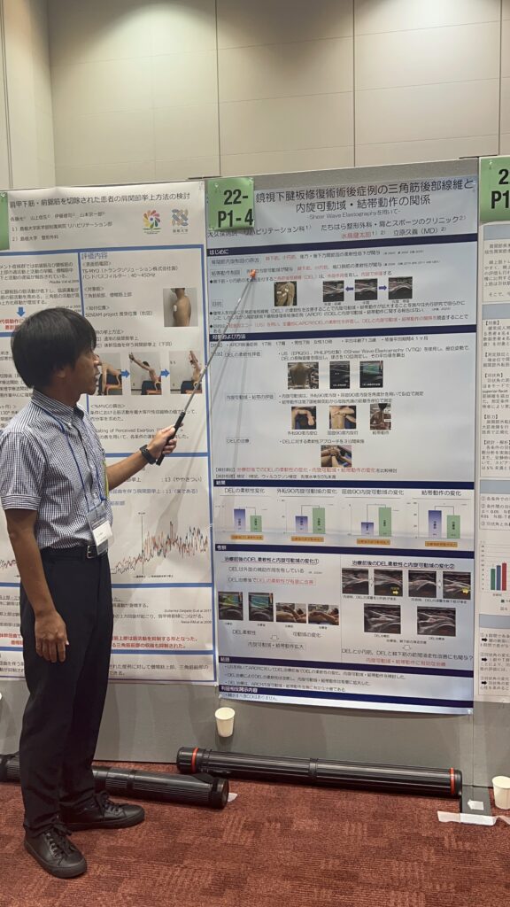 「肩とスポーツのクリニック」を標榜している当院には、大切な学会。昨年は三宅PTが京都で発表しました。